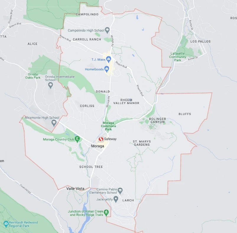 Moraga is a suburban town located in Contra Costa County, California, United States. Nestled in the beautiful hills of the San Francisco Bay Area, it offers a picturesque setting and is part of the region known as Lamorinda, which includes the neighboring cities of Lafayette and Orinda.