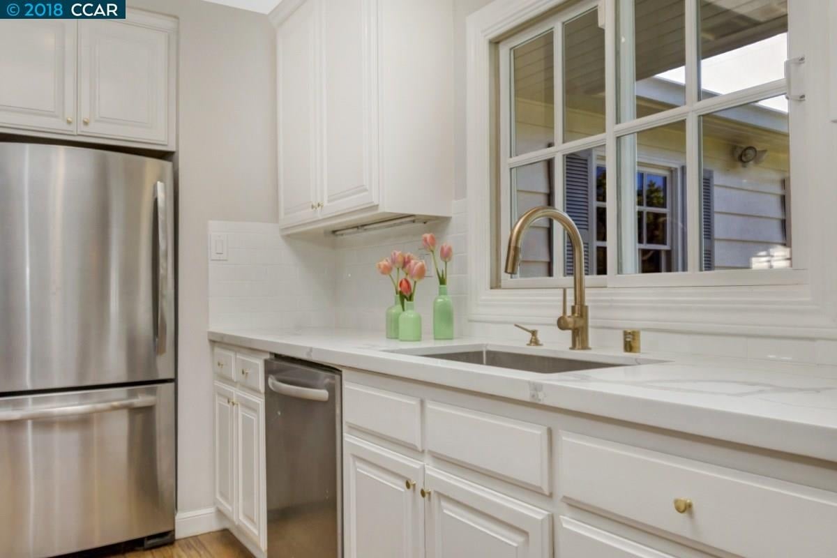 Trail neighborhood gem. Tastefully updated traditional cottage style home in prime, close in location. One of Lafayette’s most charming tree-line neighborhoods this timeless home is just steps to town, trail and schools. Hardwood floors, wood-trimmed ceilings, wood windows and antique finishes throughout. Beautifully appointed master suite with drop-dead gorgeous master bathroom, second suite with big walk-in subway tile shower, updated kitchen and spacious single level floor plan. The backyard is an entertainer’s delight with huge kitchen, stone fireplace, concrete patio, Napa rock dining area and sprawling lawn. Story-book charm curb-appear includes white picket fence, circular stone driveway, lush landscape and inviting front porch. This is truly one of a kind.
